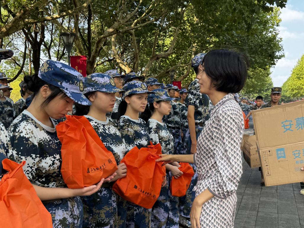 公司领导为军训的师生送上了慰问物资,同学们纷纷表示感谢。